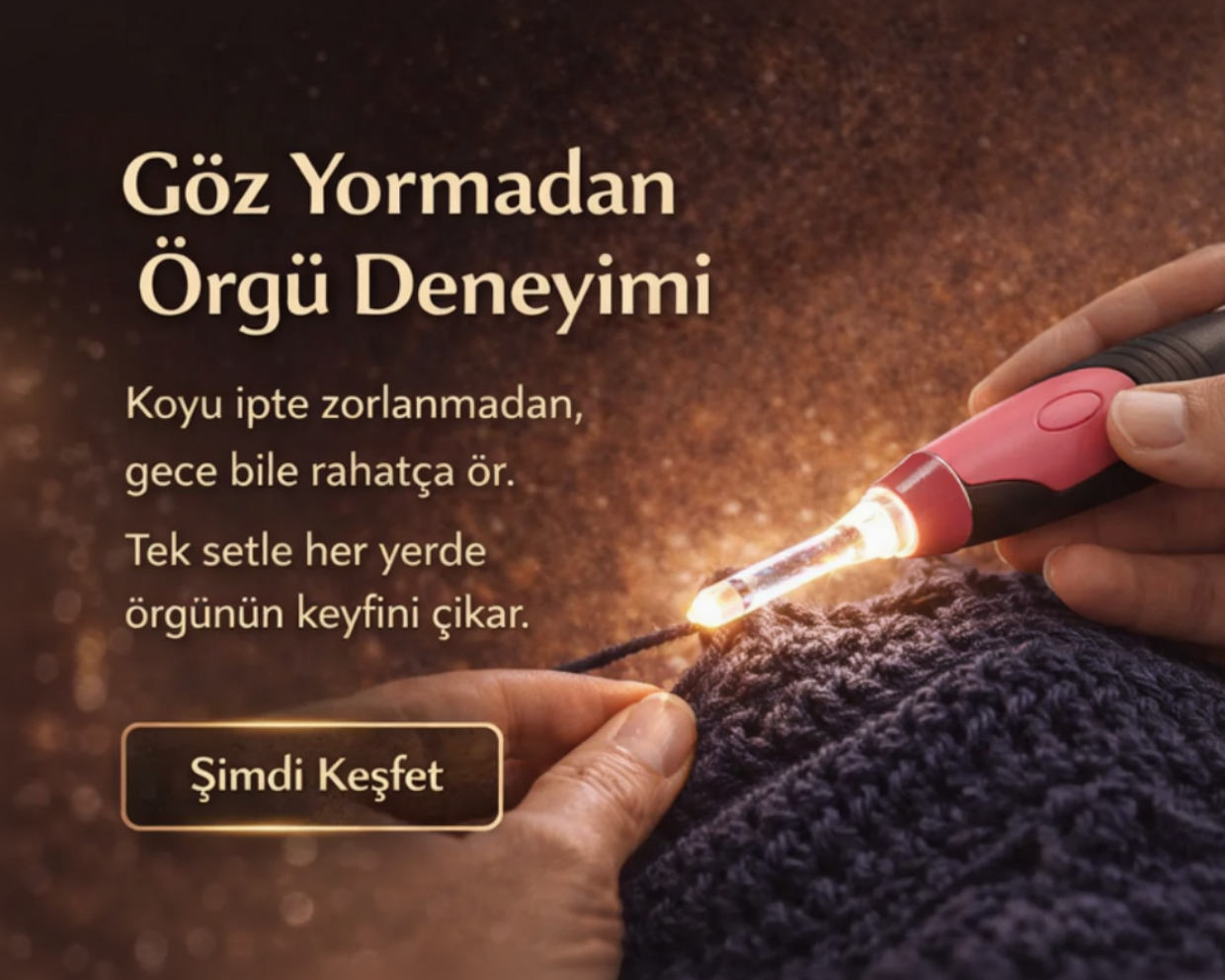 Karanlık iplerde ilmekleri görmek artık zor değil. Işıklı tığ sayesinde her detayı net gör, hata yapmadan daha rahat ör. Gözünü yormadan, keyifle örgüye odaklan.